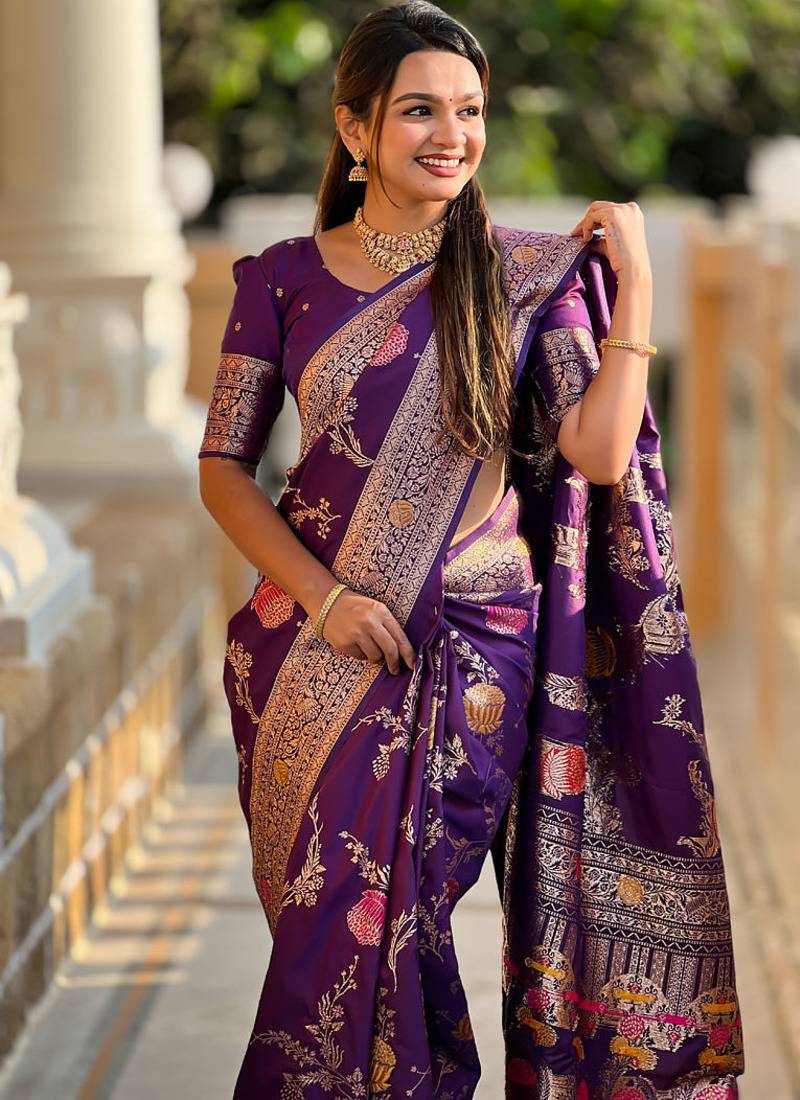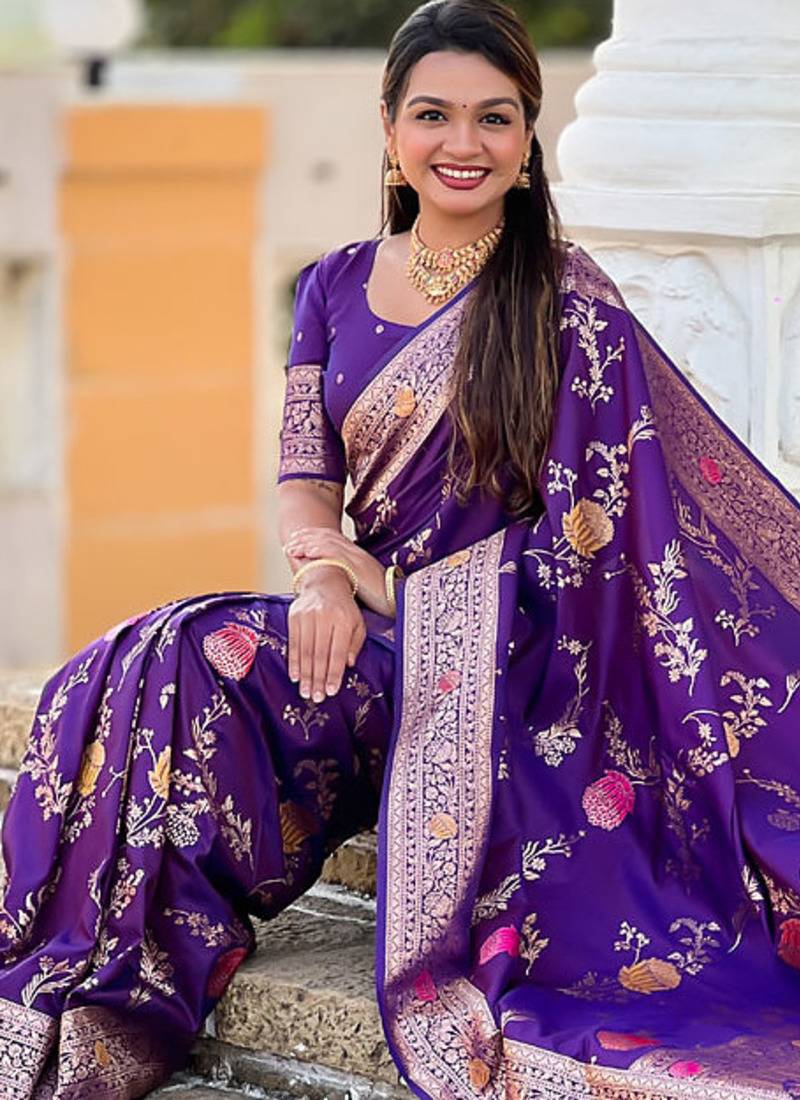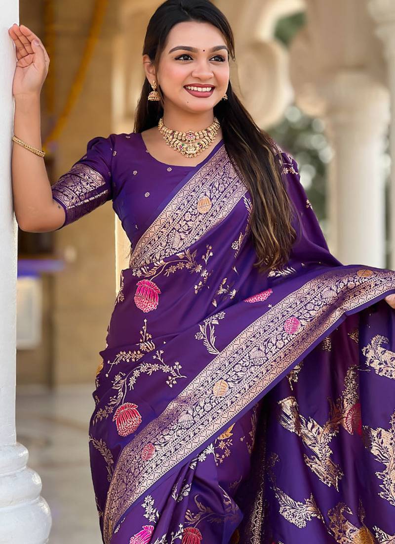 | Product Name | Designer Purple Zari Weaving Work Banarasi Silk Saree | |