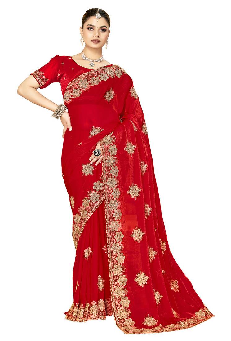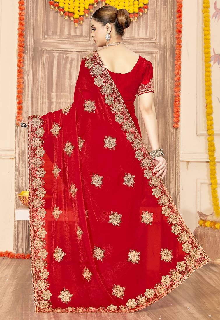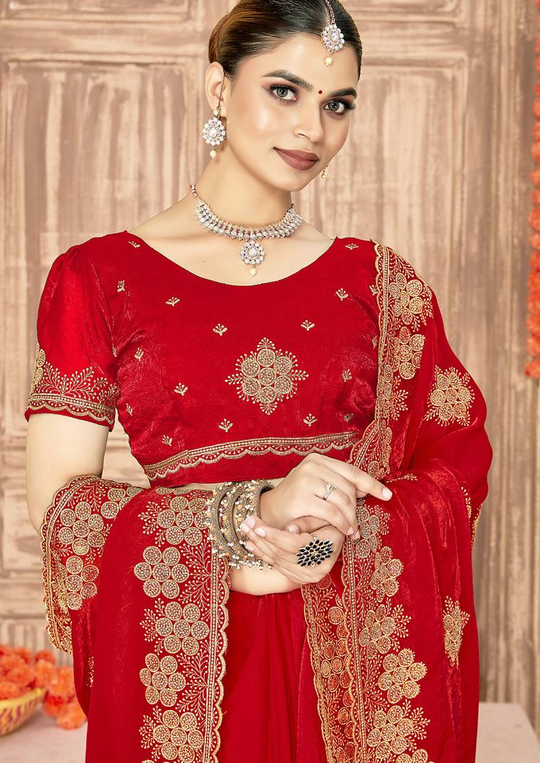 | Product Name | Designer Red Heavy Zari Embroidery Silk Blend Party Wear Saree | |