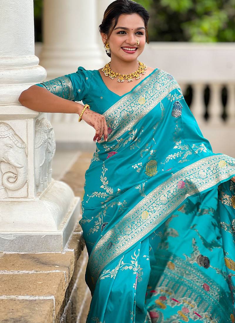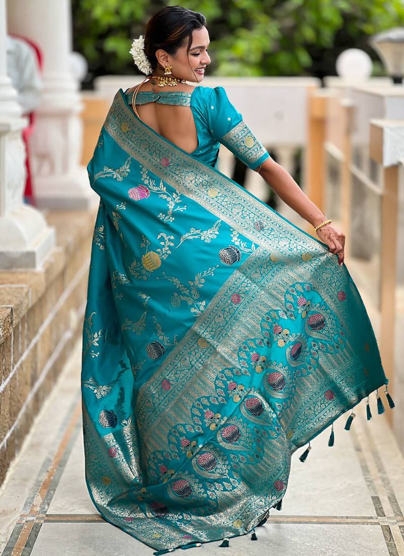 | Product Name | Designer Sky Blue Zari Weaving Work Banarasi Silk Saree | |
