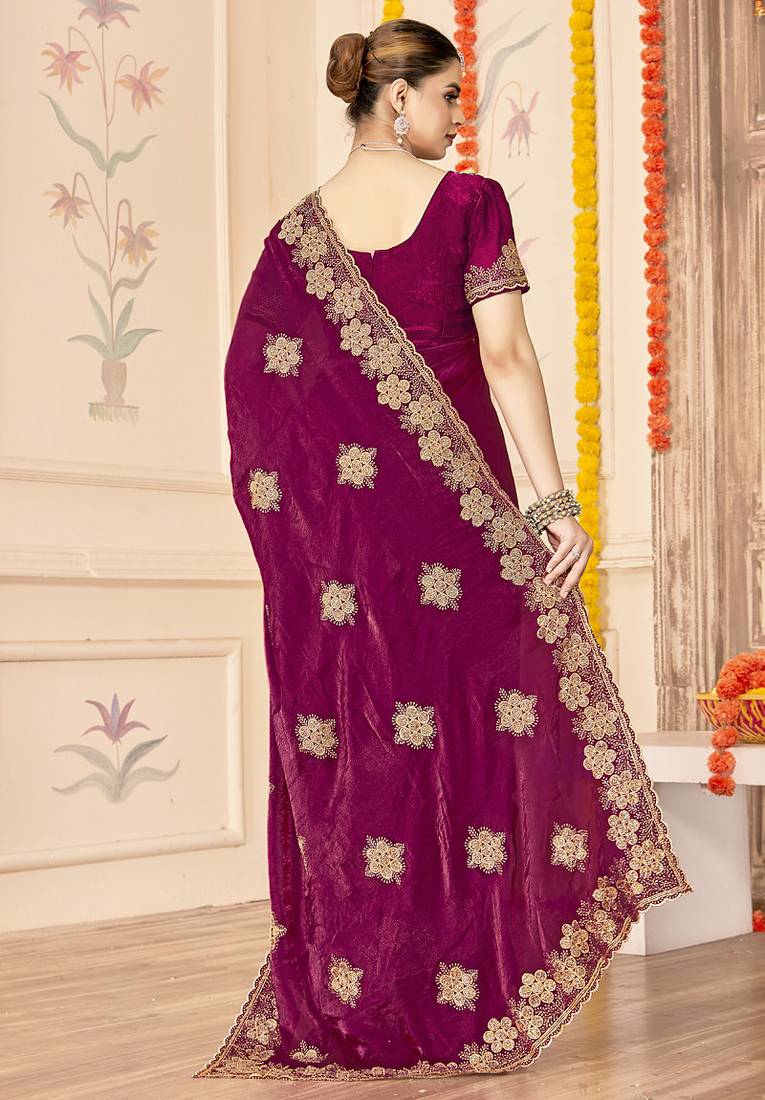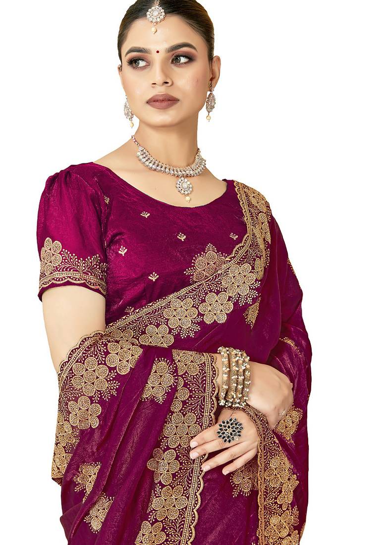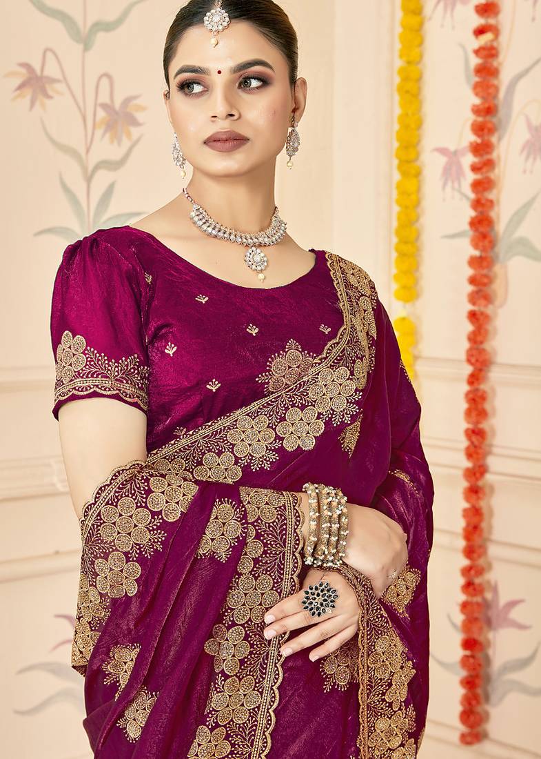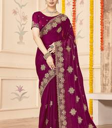 Designer wine heavy zari embroidery silk blend party wear saree