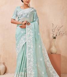 | Product Name | Indian Sea Green Resham Sequins Embroidery Work Silk Blend Saree | |