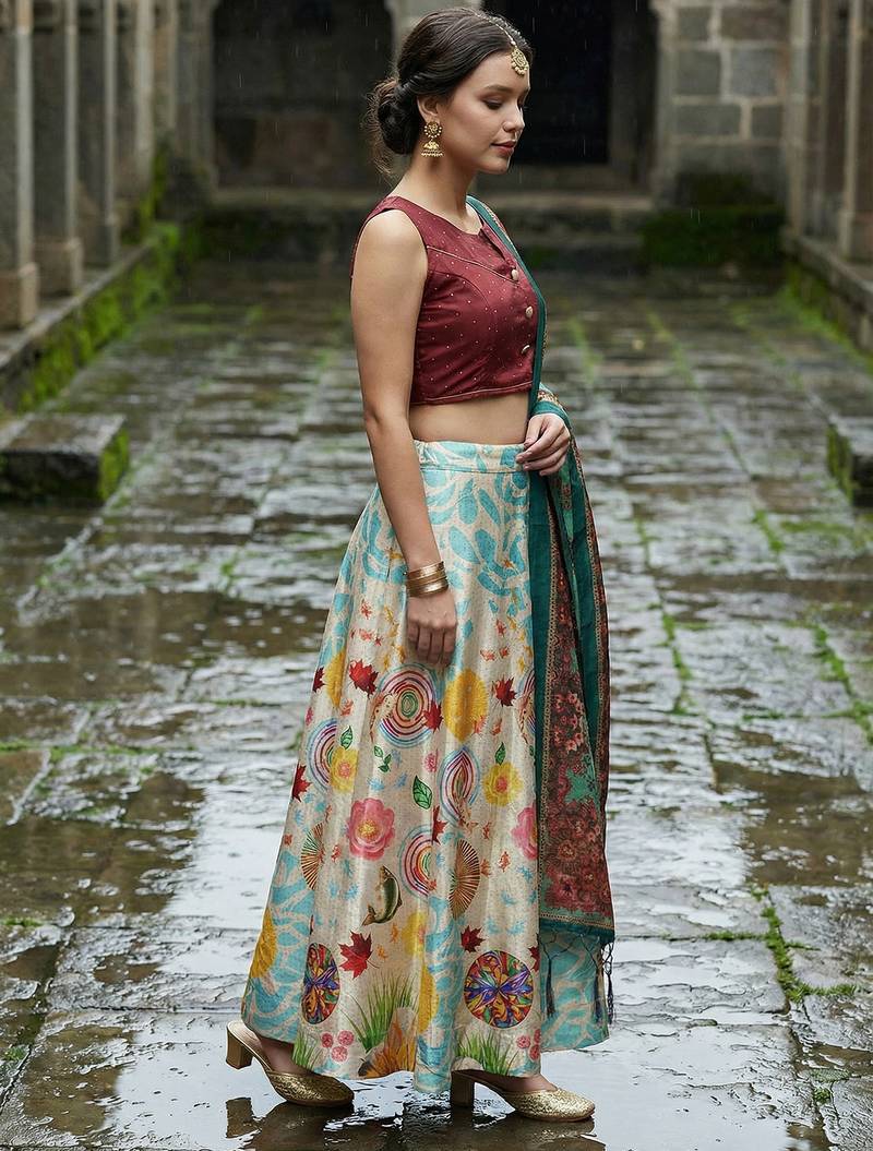 Lahenga Waist : 42 Inch Appx ( Semistitched U Can Adjust According Waist Using Drawstring )