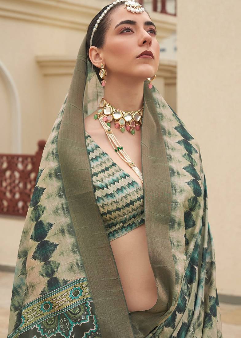 Product Name Green Digital Print Tusser Silk Saree With Unstitched Blouse