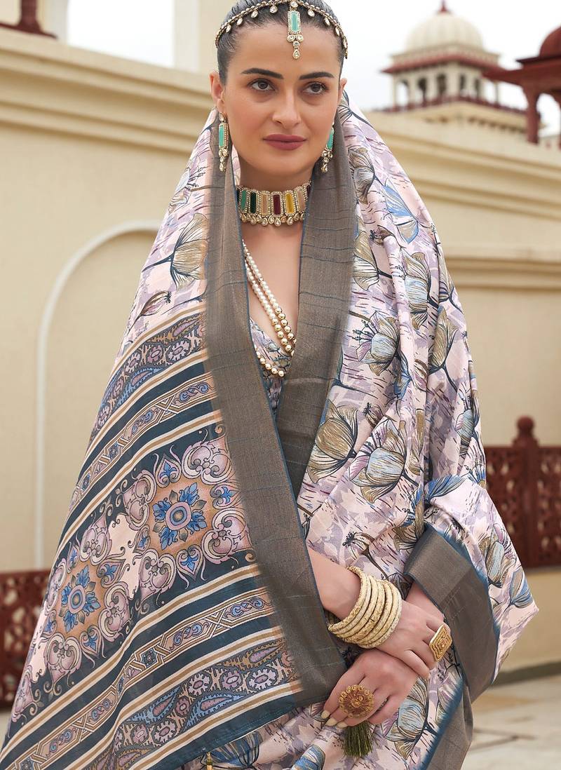 | Product Name | Light Baby Pink Digital Print Tusser Silk Saree With Unstitched Blouse | |