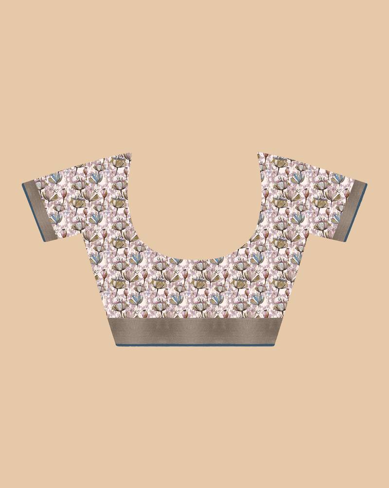 Light baby pink digital print tusser silk saree with unstitched blouse