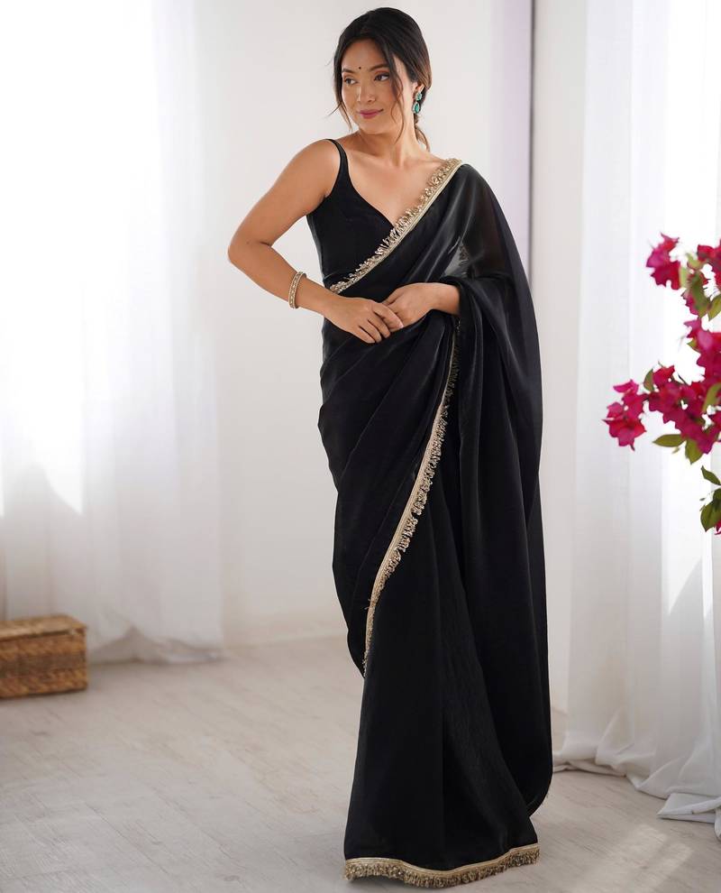 | Product Name | Black Embellished Organza Saree With Blouse | |