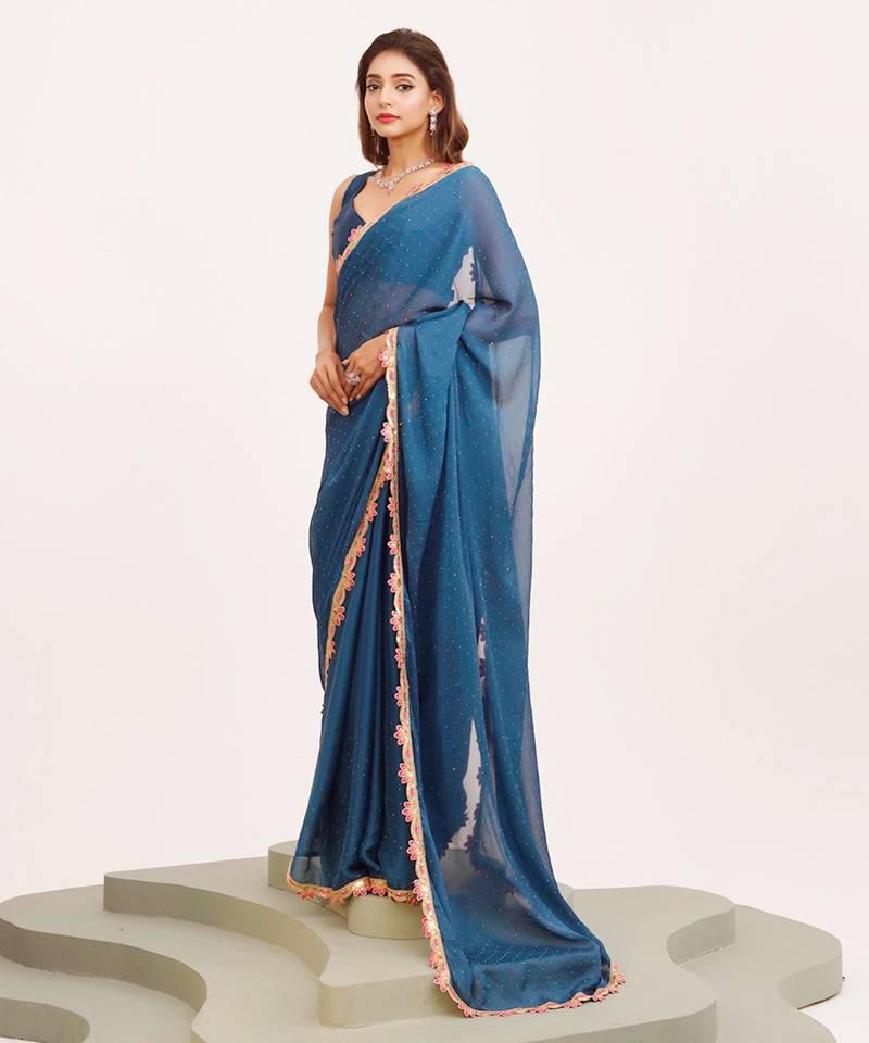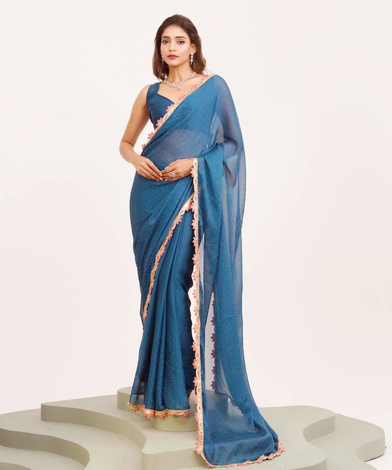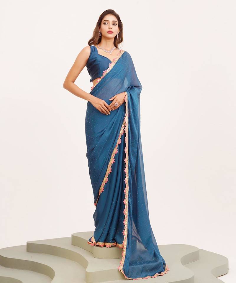 | Product Name | Blue Embellished Georgette Saree With Blouse | |