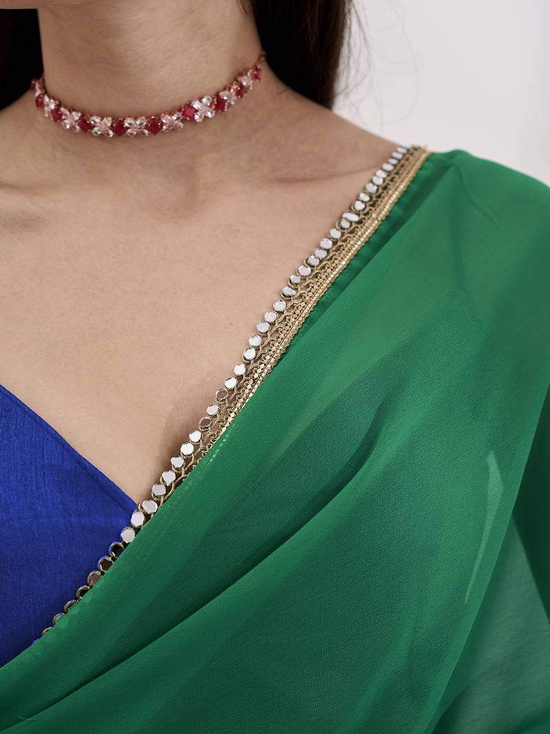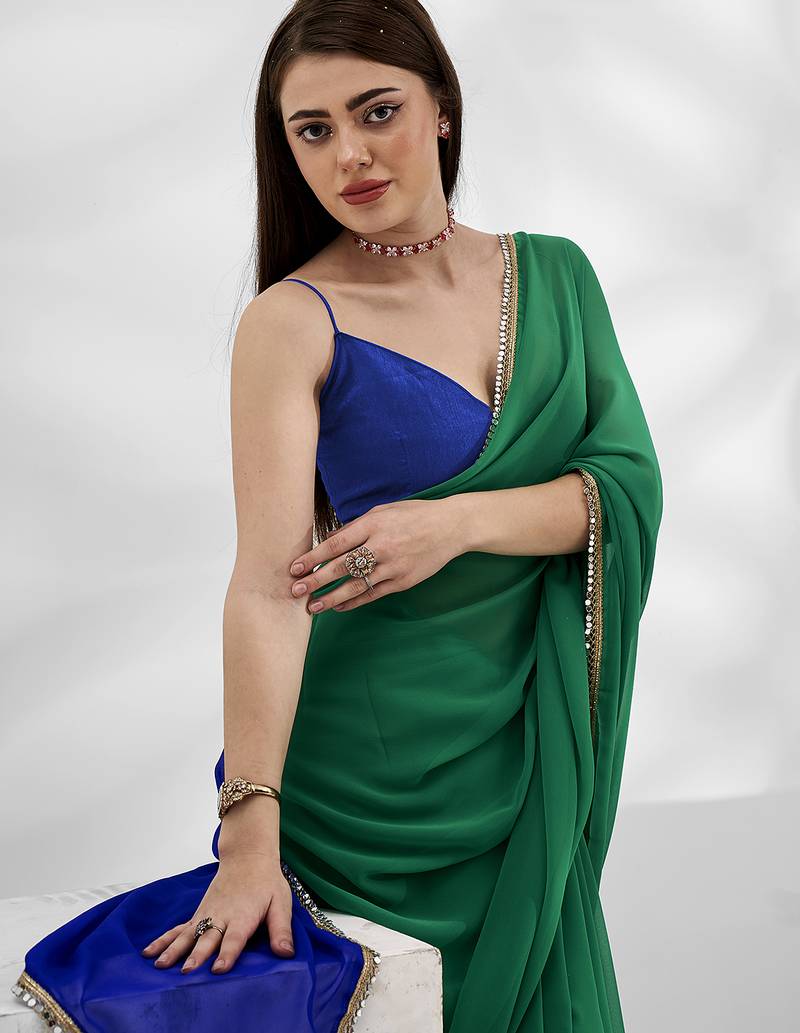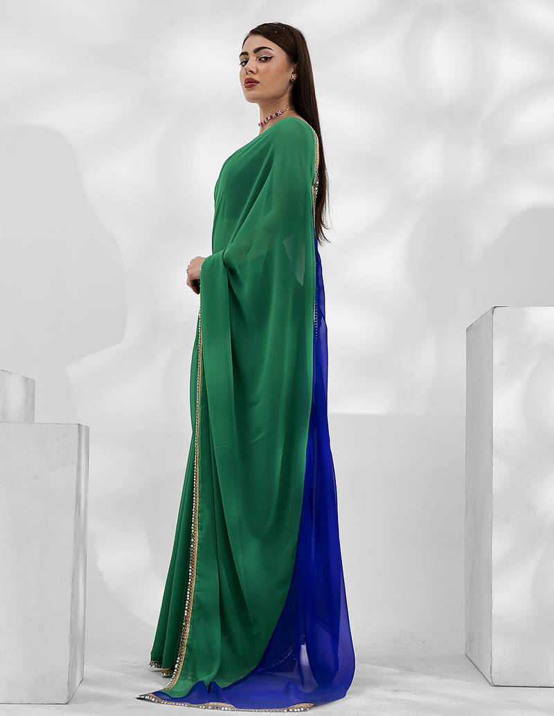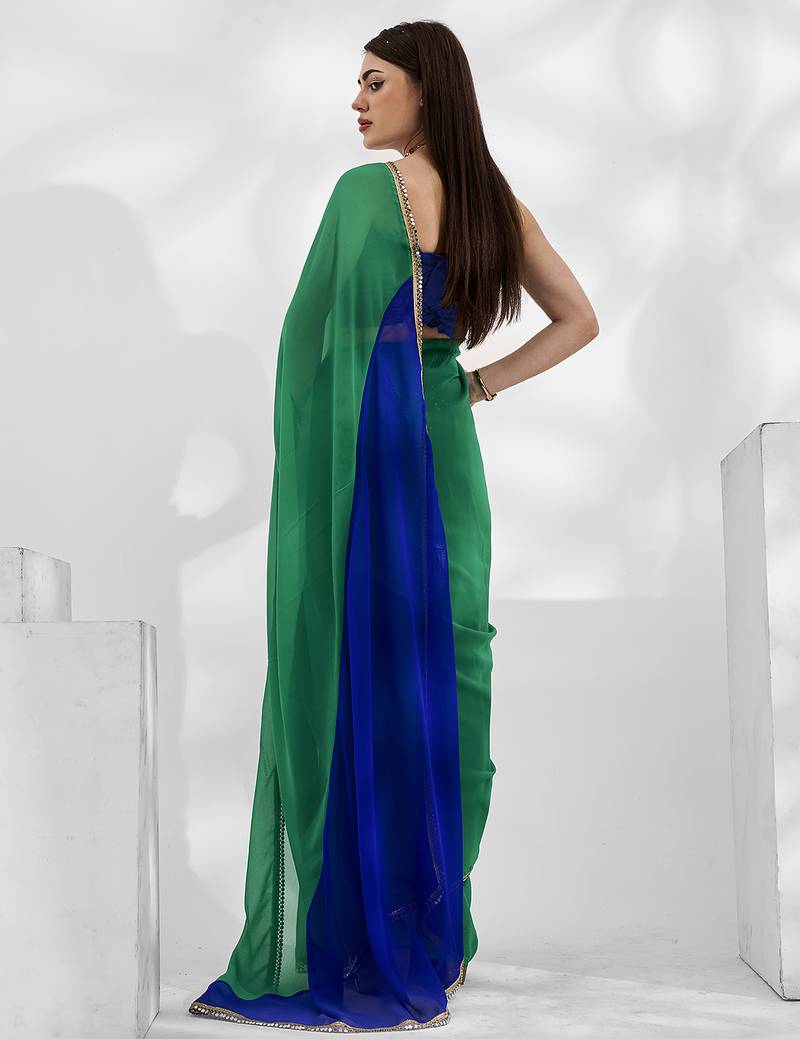 | Product Name | Green And Blue Colourblock Georgette Designer Saree With Blouse | |