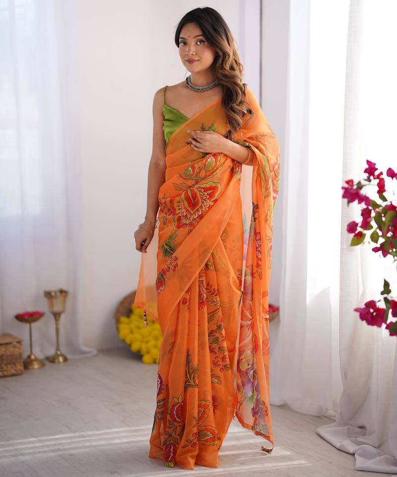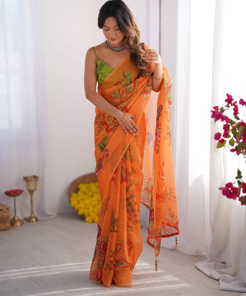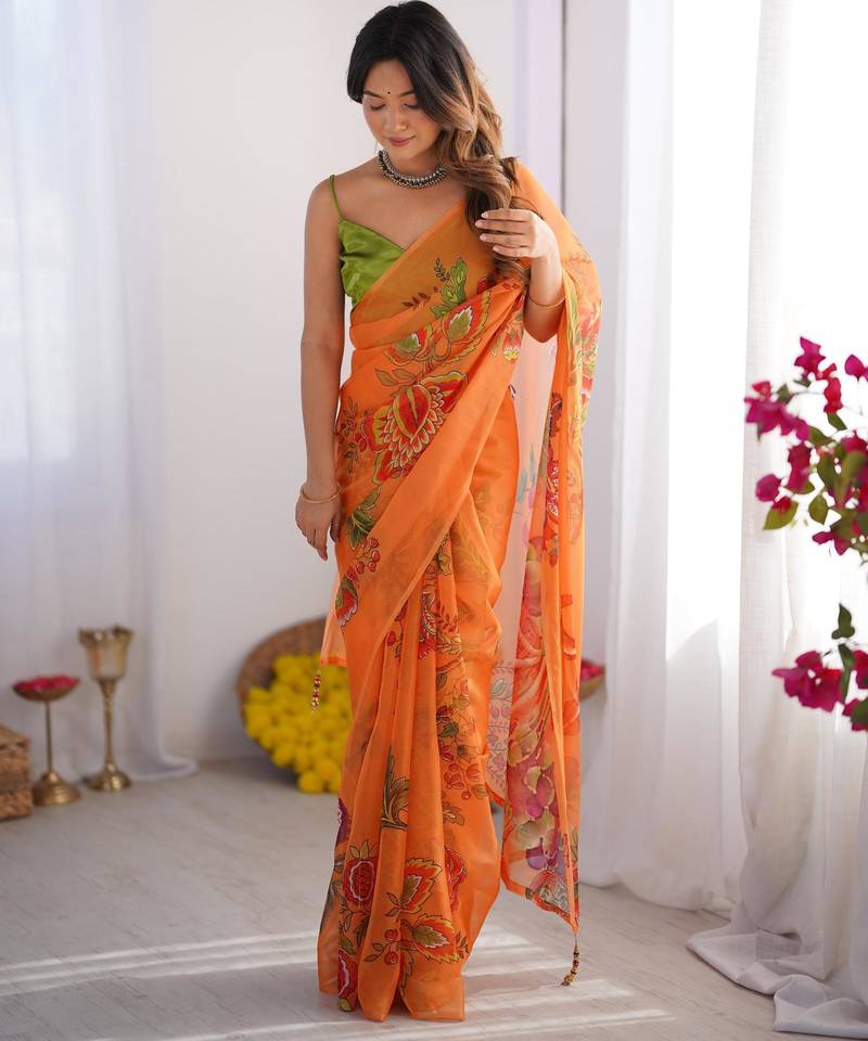| Product Name | Mustard Floral Organza Saree With Blouse | |