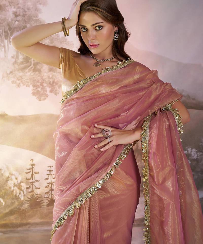 | Product Name | Peach Embellished Organza Saree With Blouse | |