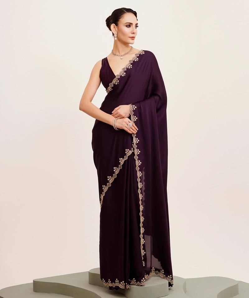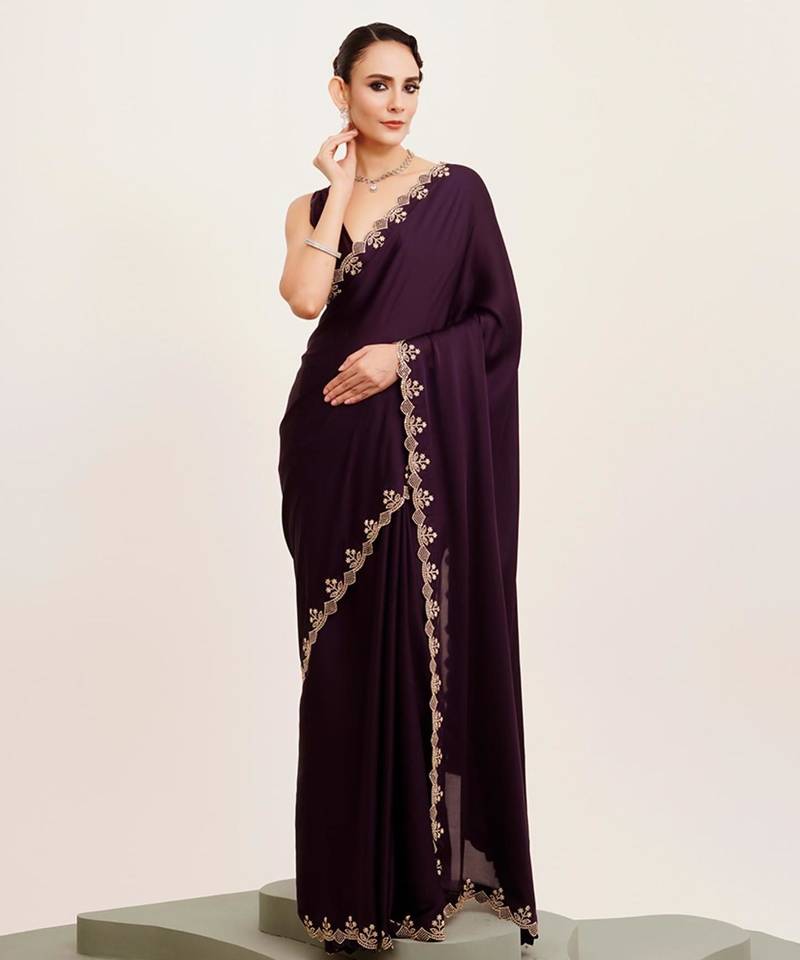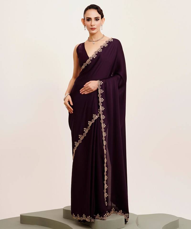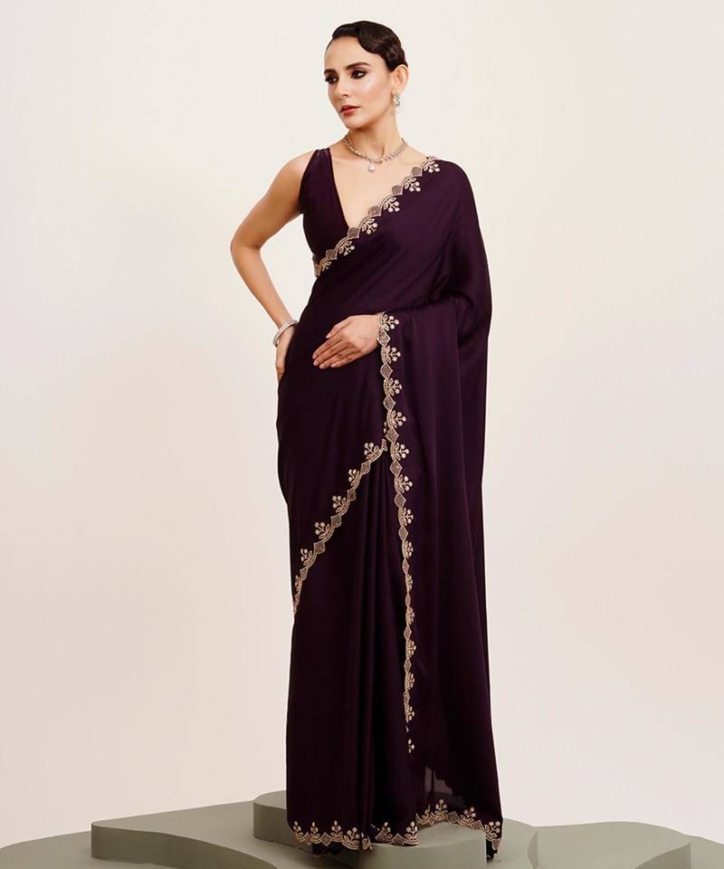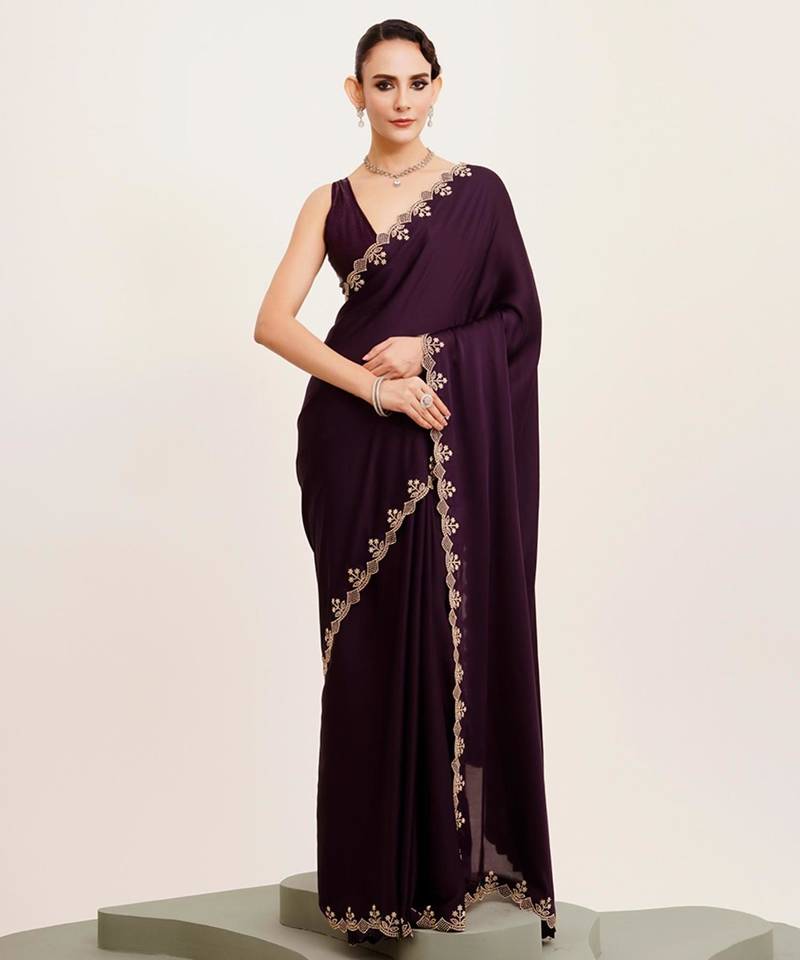 | Product Name | Wine Beads And Stones Satin Embellished Saree With Blouse | |
