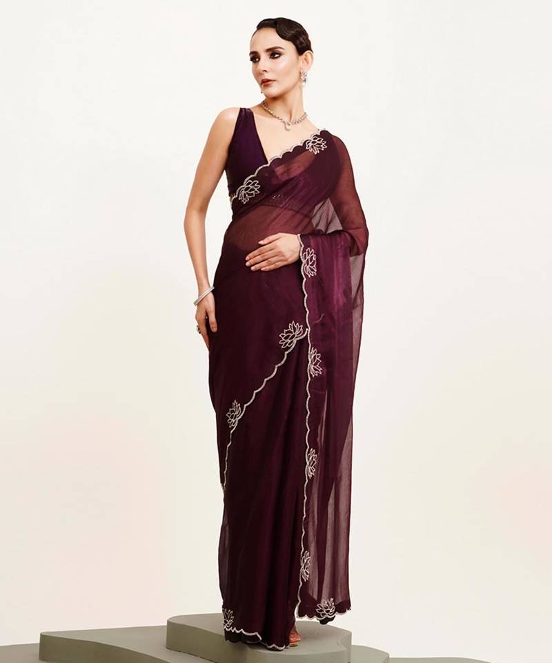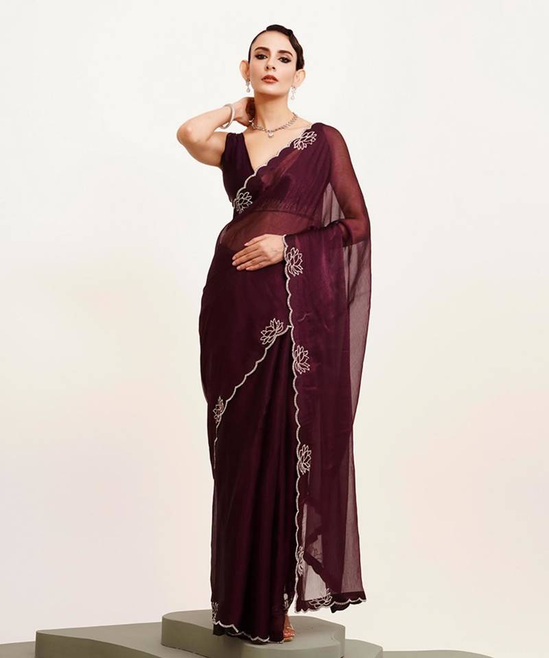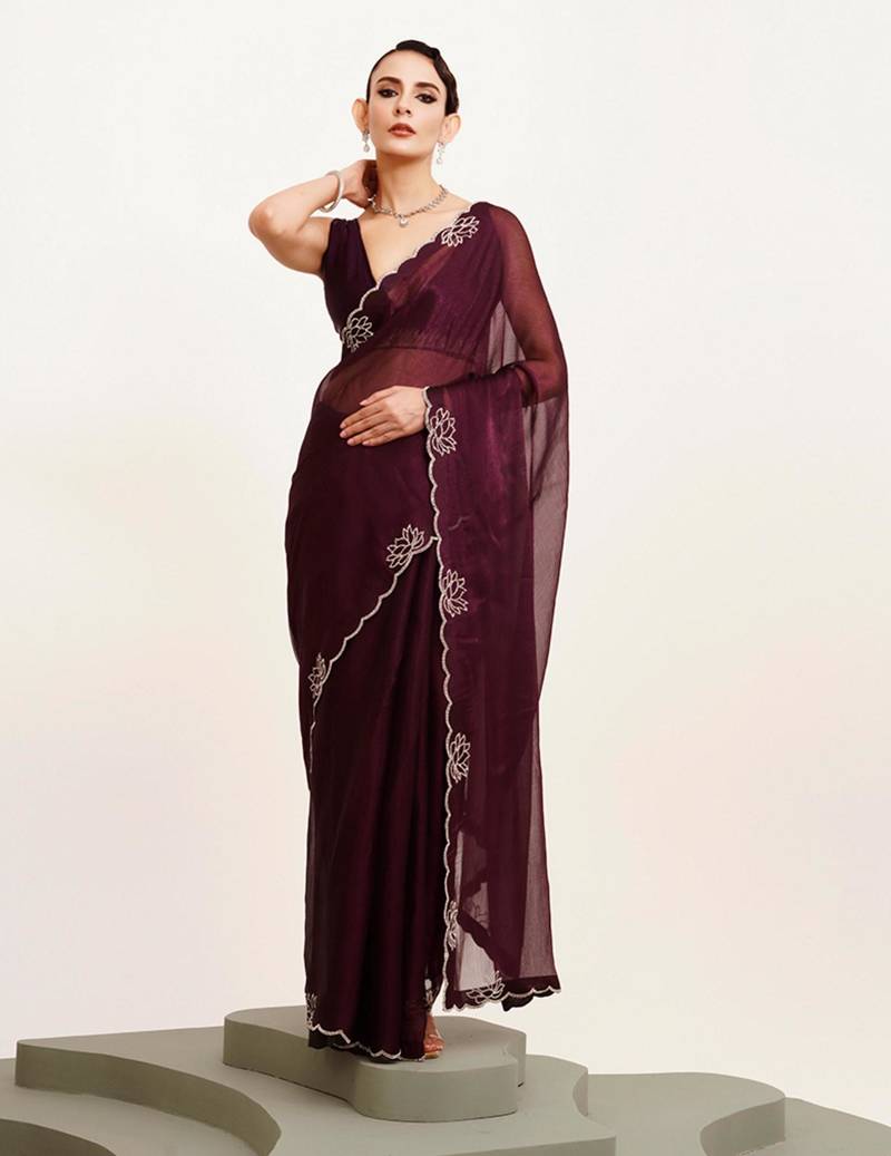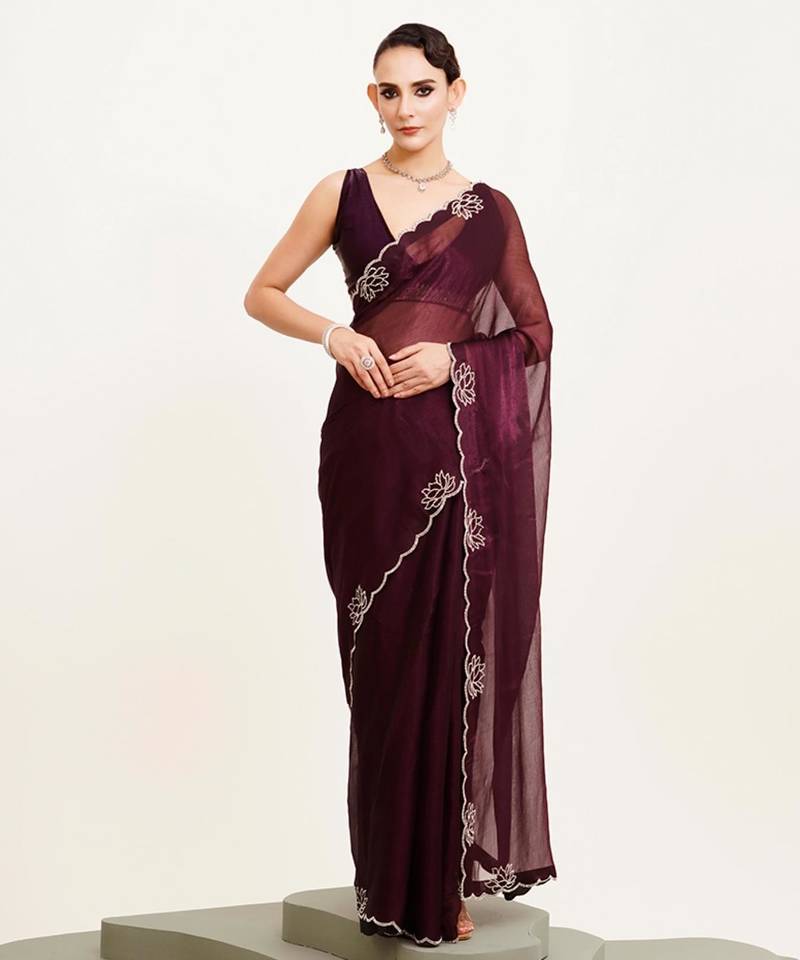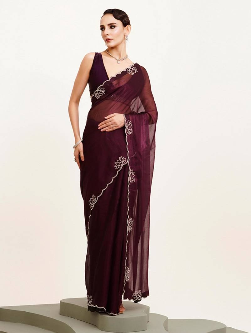 | Product Name | Wine Beads And Stones Satin Embellished Saree With Blouse | |