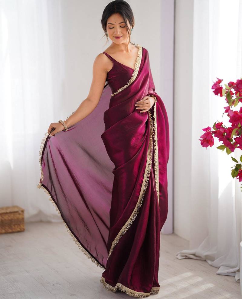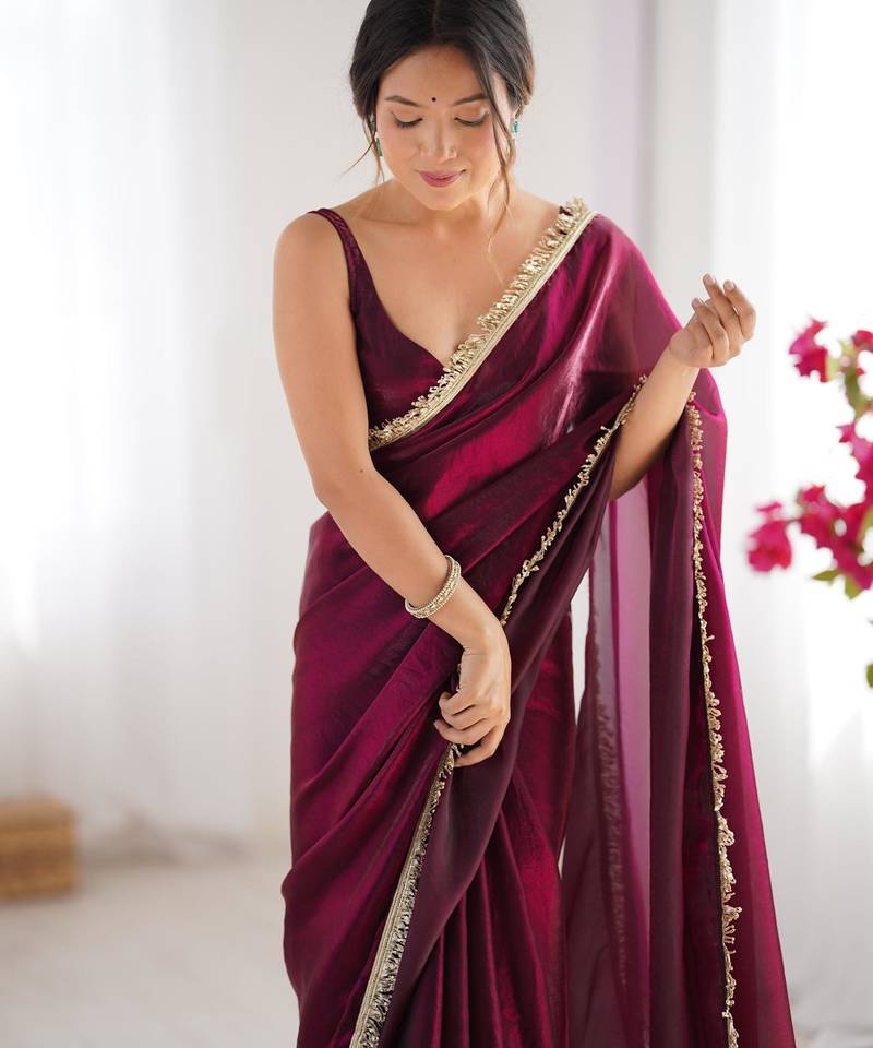 | Product Name | Wine Embellished Organza Saree With Blouse | |