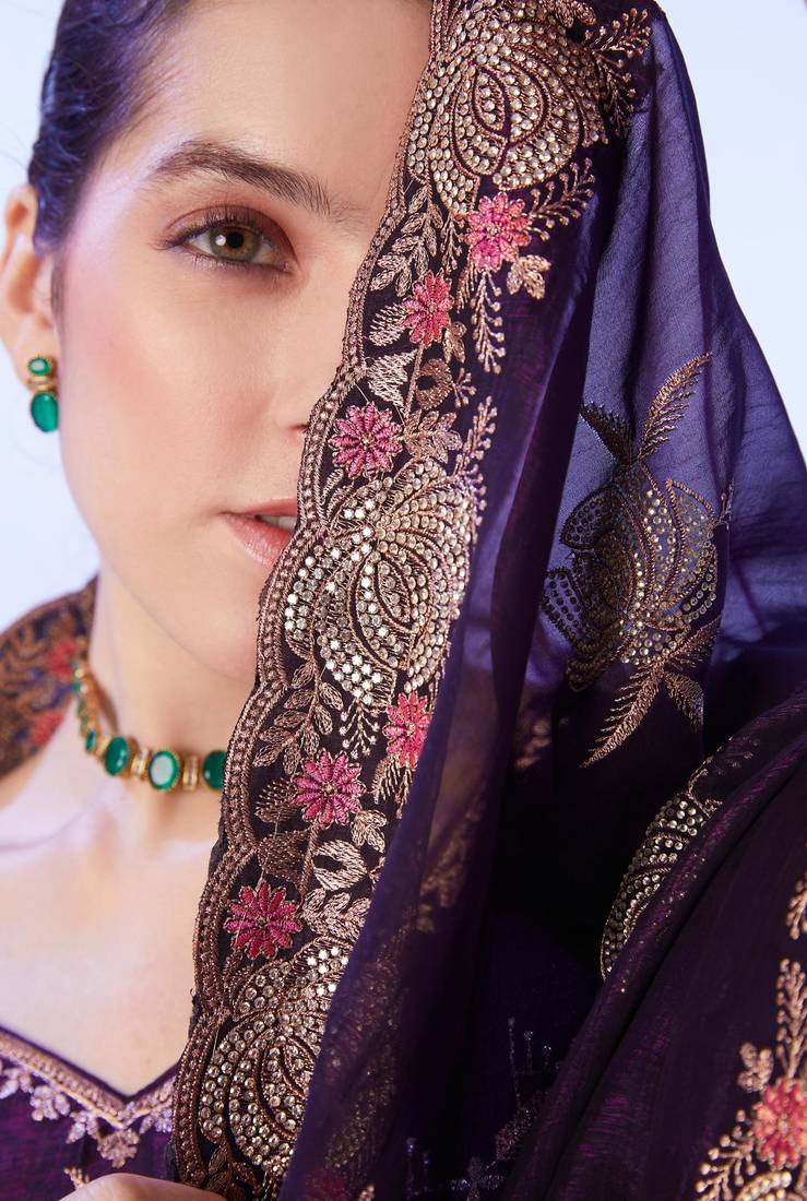 | Product Name | Wine Embellished Chiffon Saree With Blouse | |