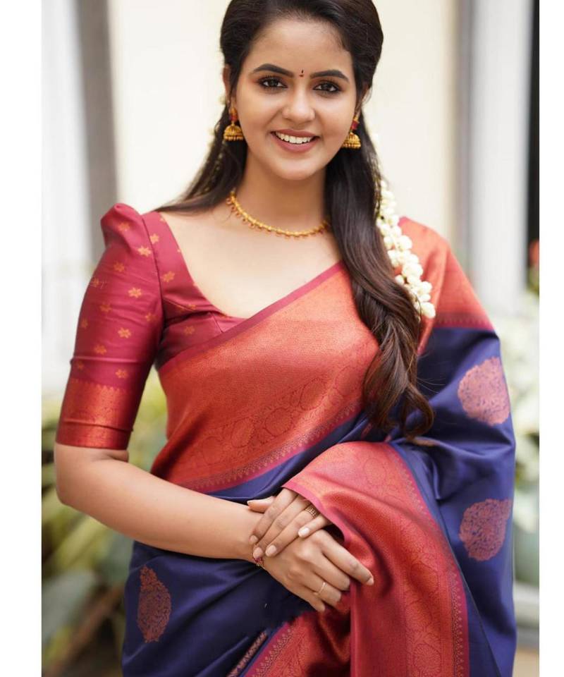 | Product Name | Elegance Navy Blue Banarasi Art Art Silk Jacquard Saree With Unstitched Blouse | |