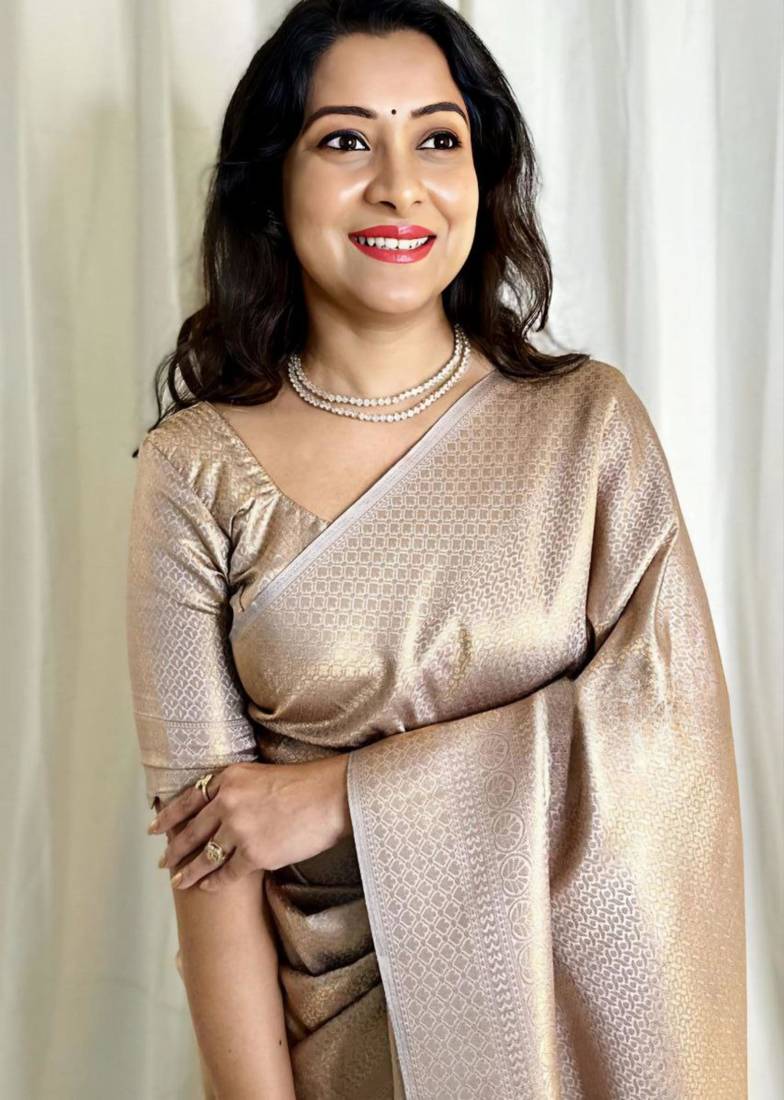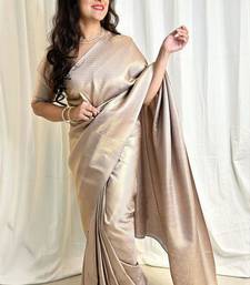 Traditional jacquard grey self design art silk blend light weight saree with unstitched blouse