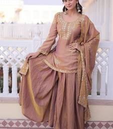 Antique-gold fendi crush embroidered kurta sharara set with dupatta stitched