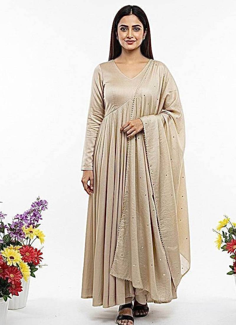 | Product Name | Beige Chanderi Cotton Hand Work Gown With Pant, Fully Stitched Ethnic Wear | |
