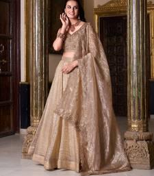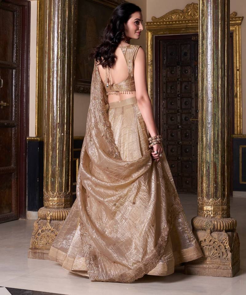 Beige plain gold crush lehenga choli with embroidered dupatta
