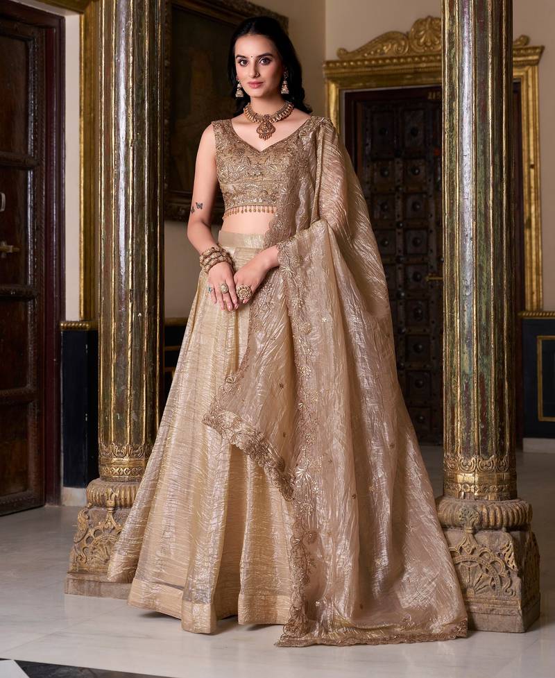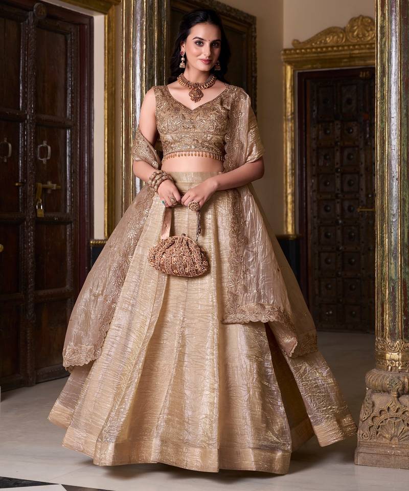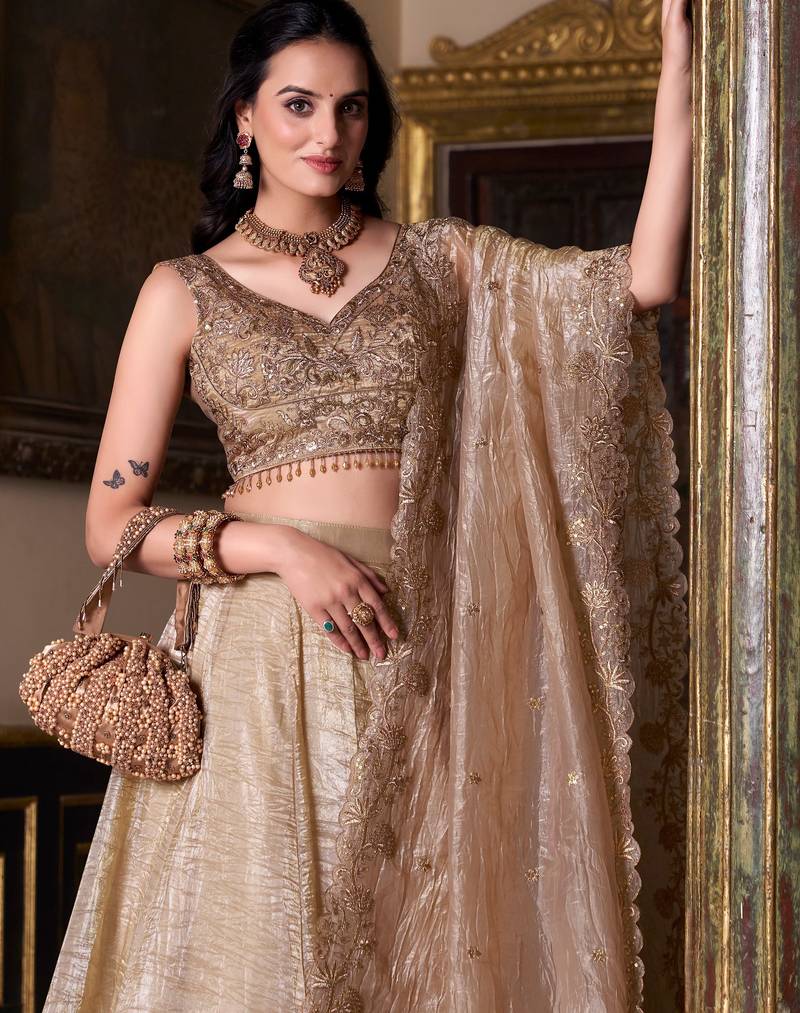 | Product Name | Beige Plain Gold Crush Lehenga Choli With Embroidered Dupatta | |