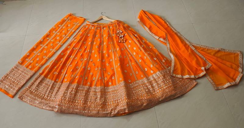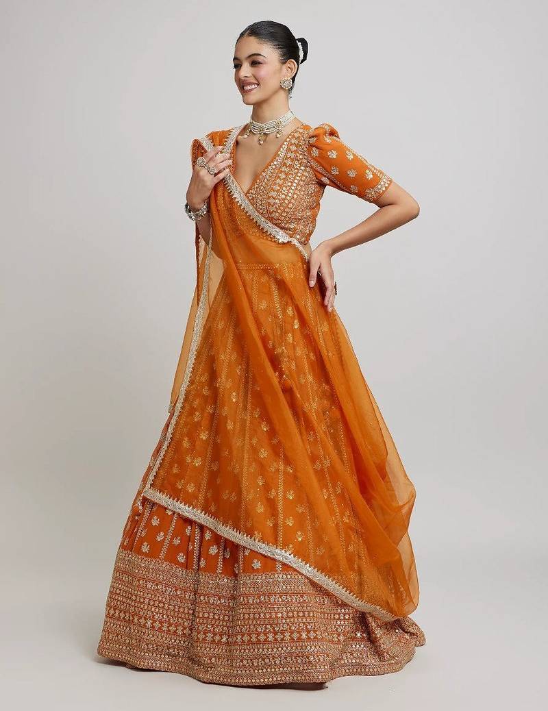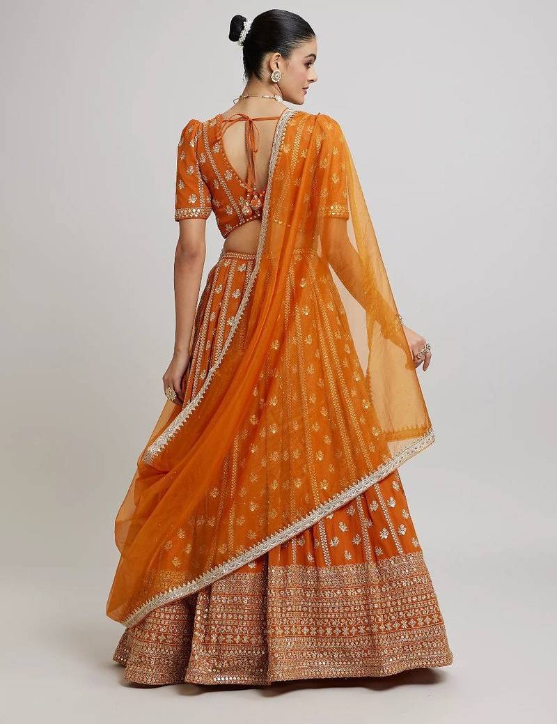 | Product Name | Bright Orange Partywear Lehenga With Zari Embroidery Design | |