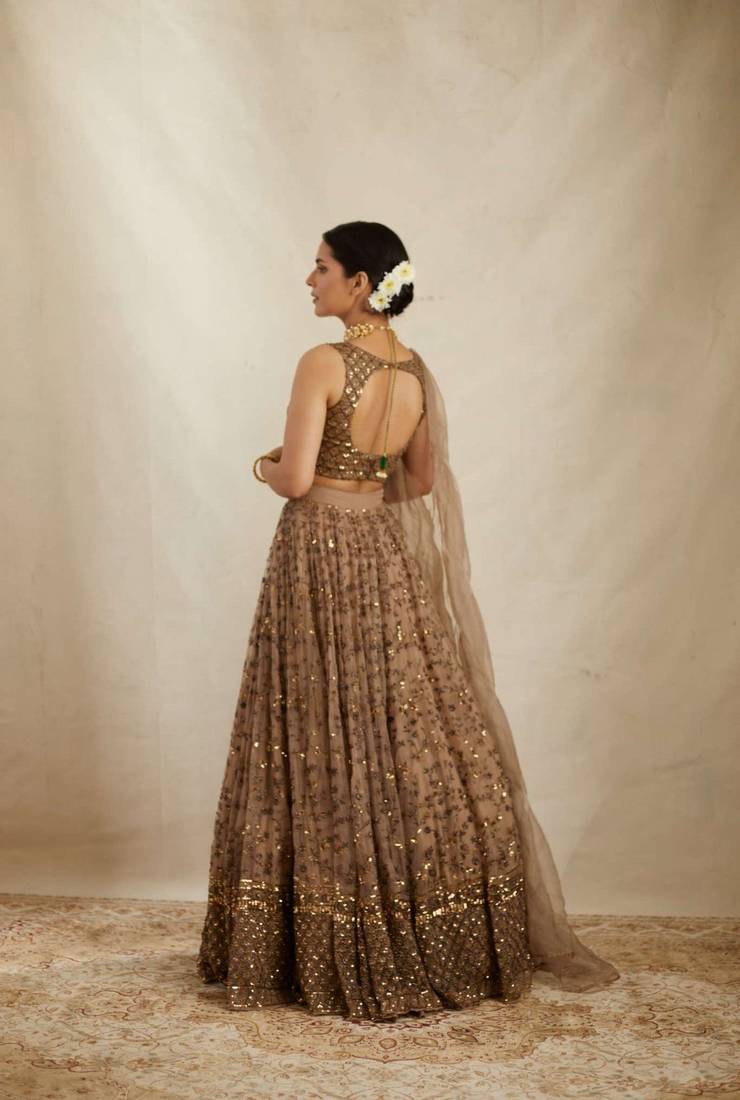 Coffee brown sequins work lehenga choli