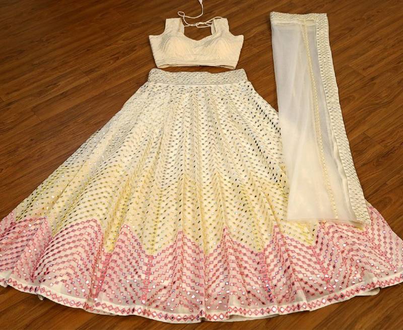 | Product Name | Cream Faux Georgette Mirror Work Lehenga Choli | |