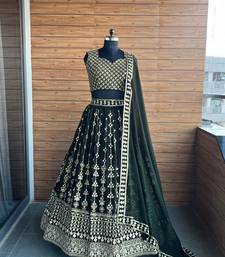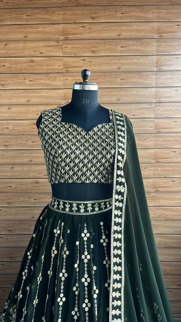 Dark green faux georgette lehenga choli with zari & sequins embroidery