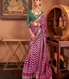 Dark pink patola silk blend saree with traditional motifs & zari::Contrast border | unstitched blouse