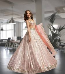 Designer peach lehenga choli with heavy sequins work & flared skirt
