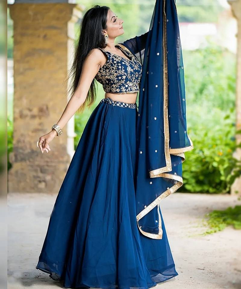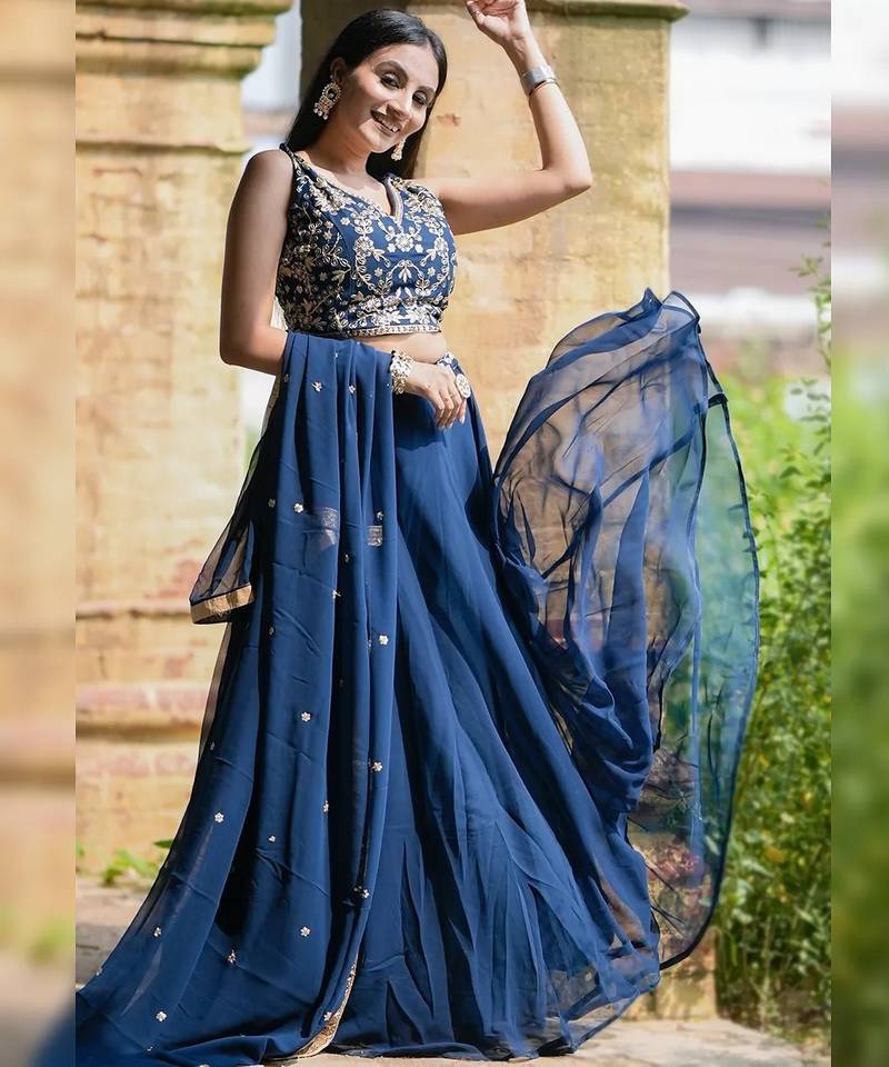 Product Name Graceful Navy Blue Partywear Lehenga With 8 Meter Flair