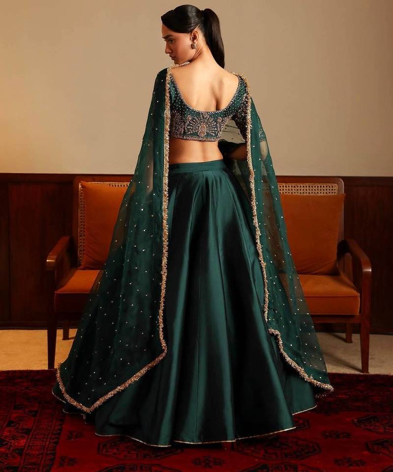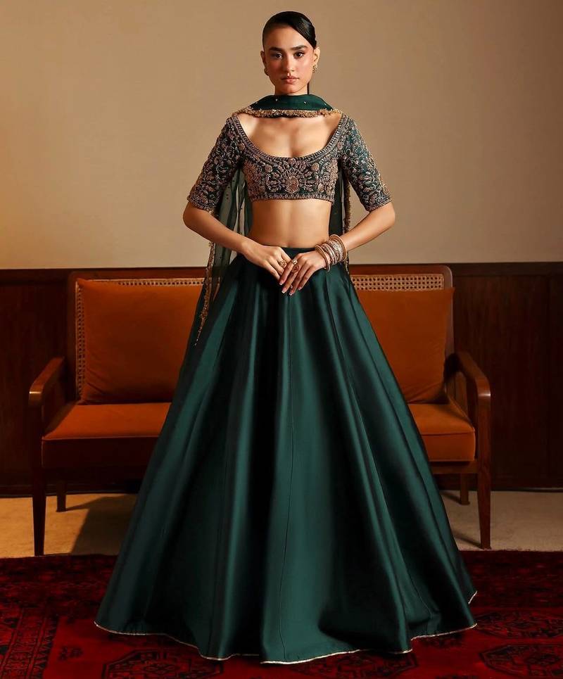 green malai satin lehenga choli with dupatta