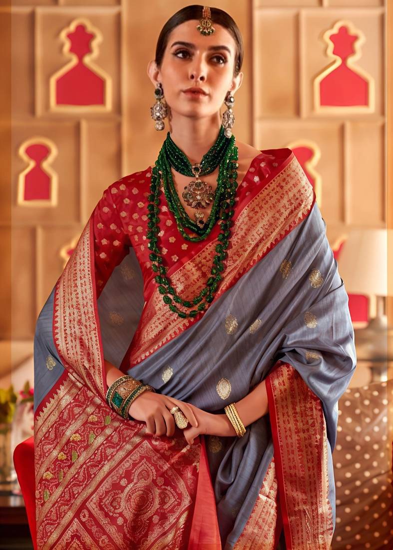 | • | Saree | : | Color- Grey / Fabric- Banarasi Silk |