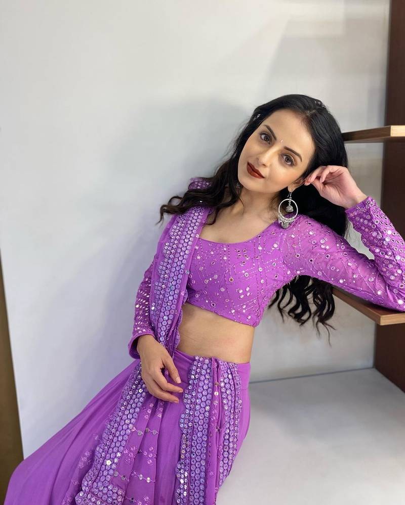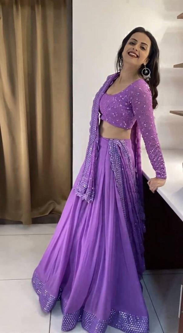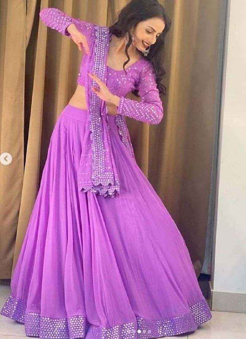 Lavender faux georgette lehenga choli with sequin & thread embroidery work and matching dupatta