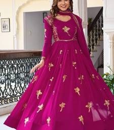 Magenta faux georgette anarkali suit with thread & sequin work full stitched salwar kameez
