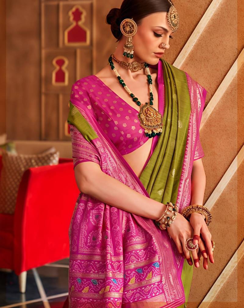 Product Name Mahendi Banarasi Patola Saree With Unstitch Blouse