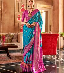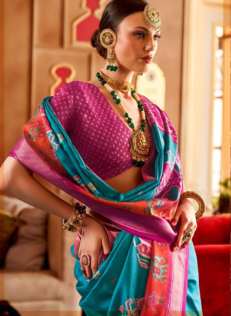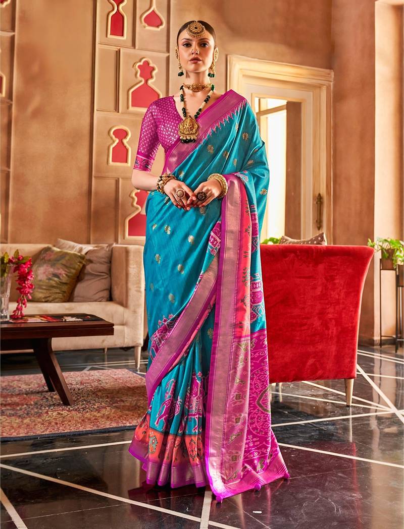 Majestic turquoise rani banarasi patola saree with unstitch blouse