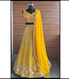 Product Name Mustard Yellow Faux Georgette Lehenga Choli With Multicolor Thread & Sequins Embroidery