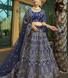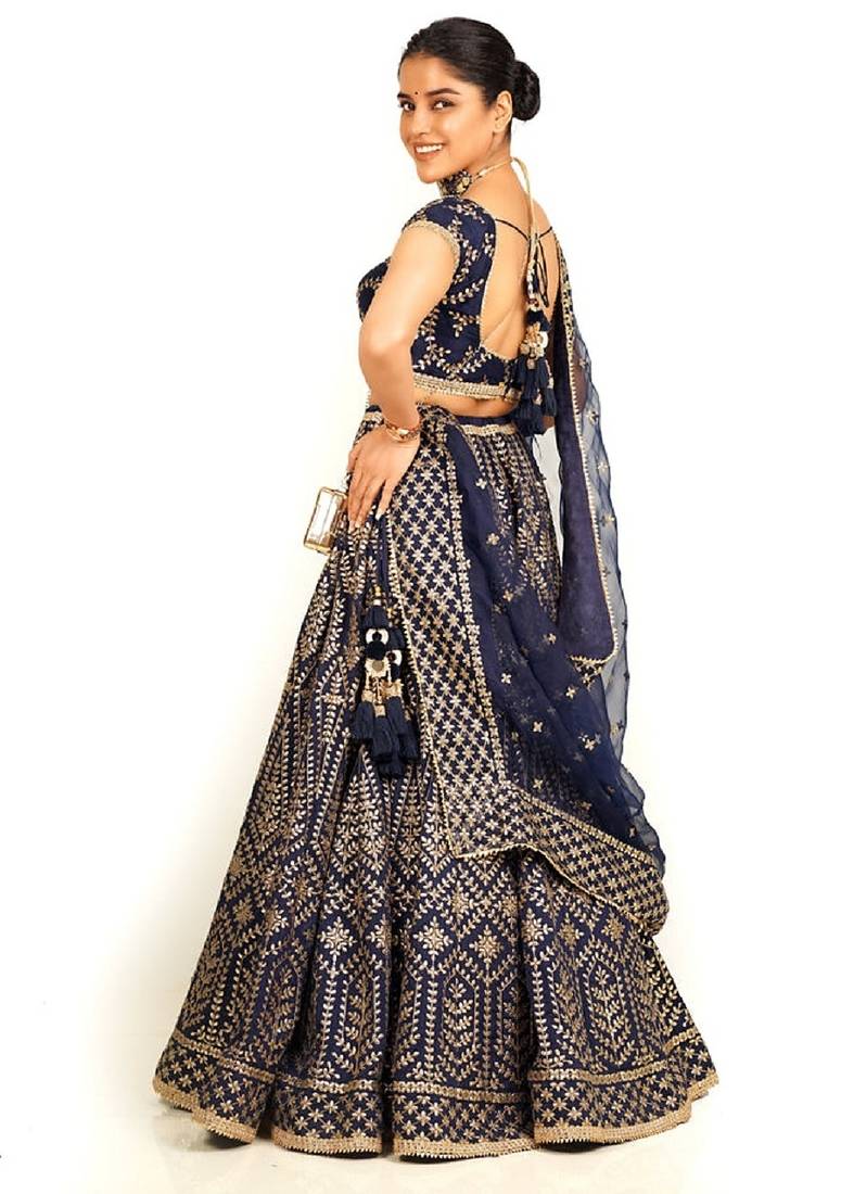 Navy blue malai satin silk lehenga choli with zari & dori embroidery work and net dupatta