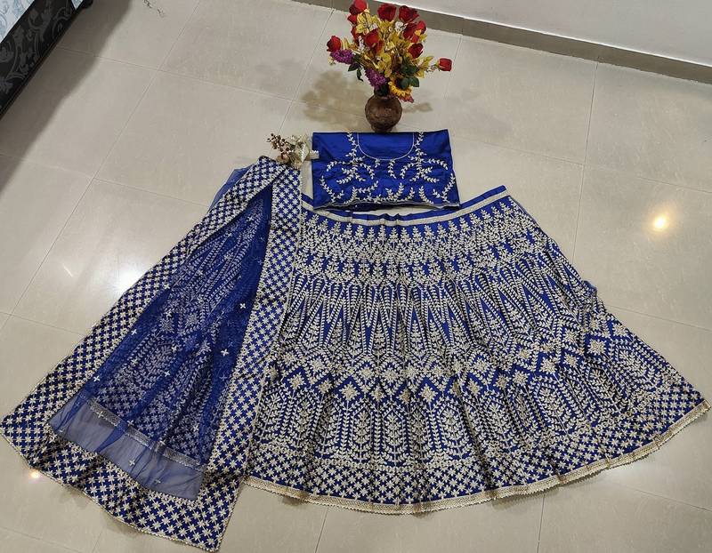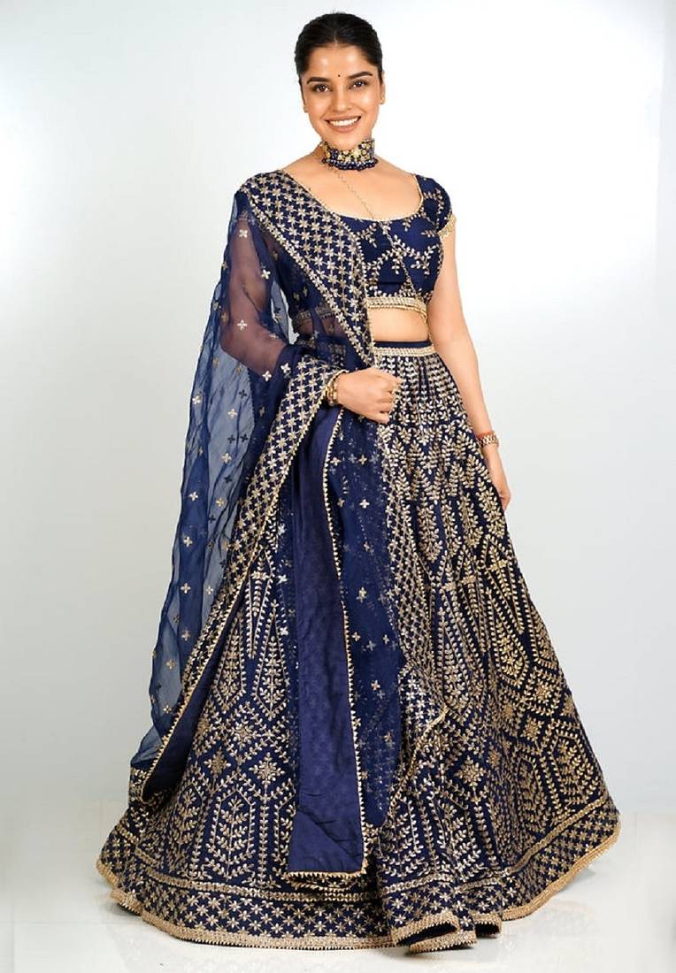 | Product Name | Navy Blue Malai Satin Silk Lehenga Choli With Zari & Dori Embroidery Work And Net Dupatta | |