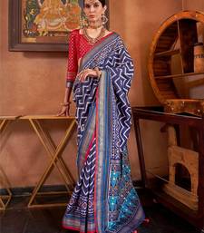 Nevy blue patola silk blend saree with traditional motifs & zari::Contrast border | unstitched blouse