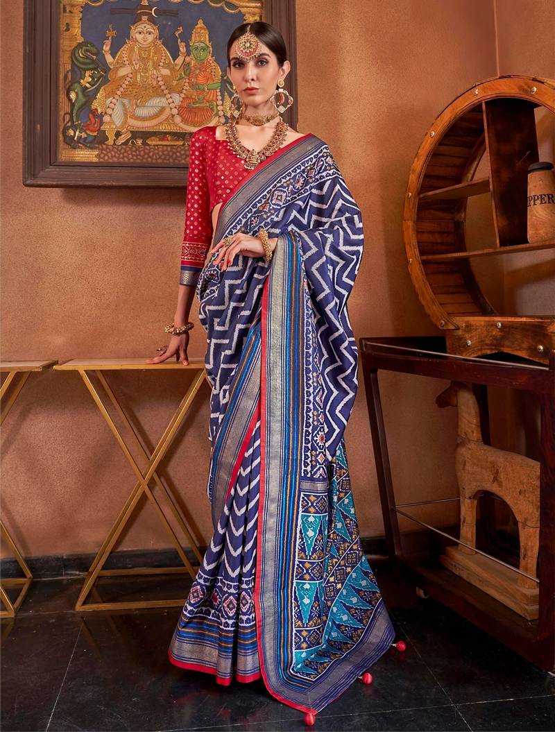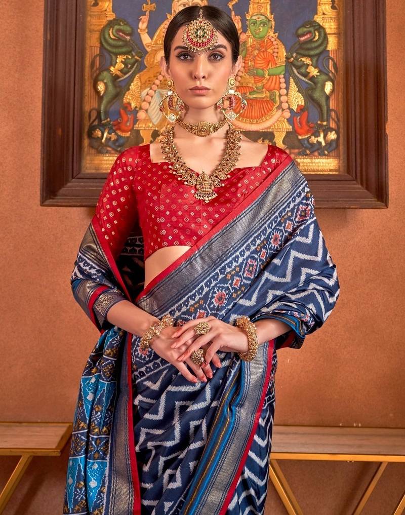 | Product Name | Nevy Blue Patola Silk Blend Saree With Traditional Motifs & Zari/Contrast Border | Unstitched Blouse | |