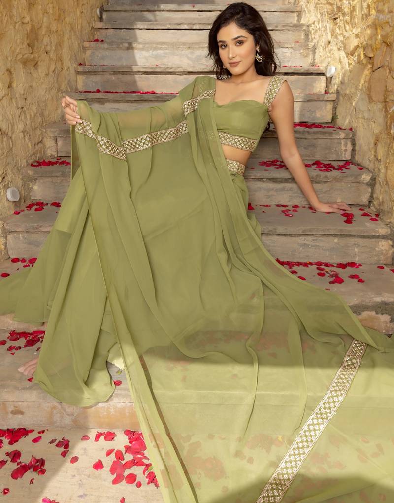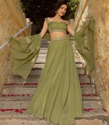 Olive green faux georgette lehenga choli set