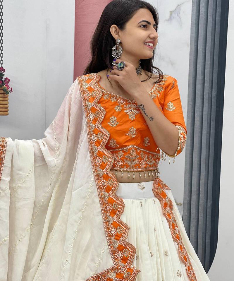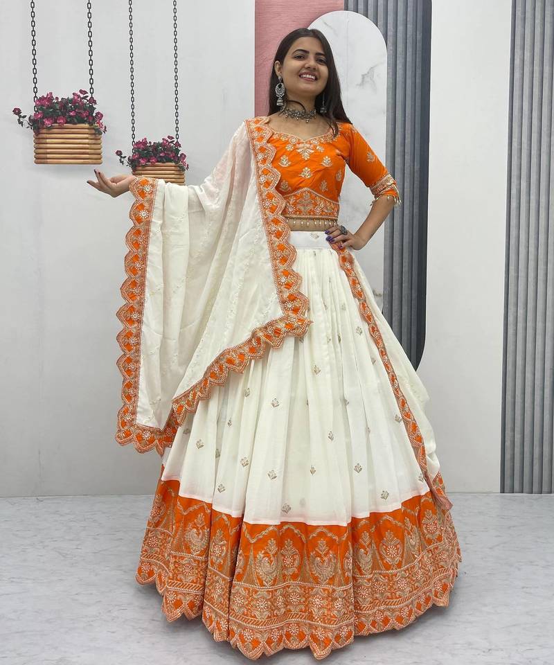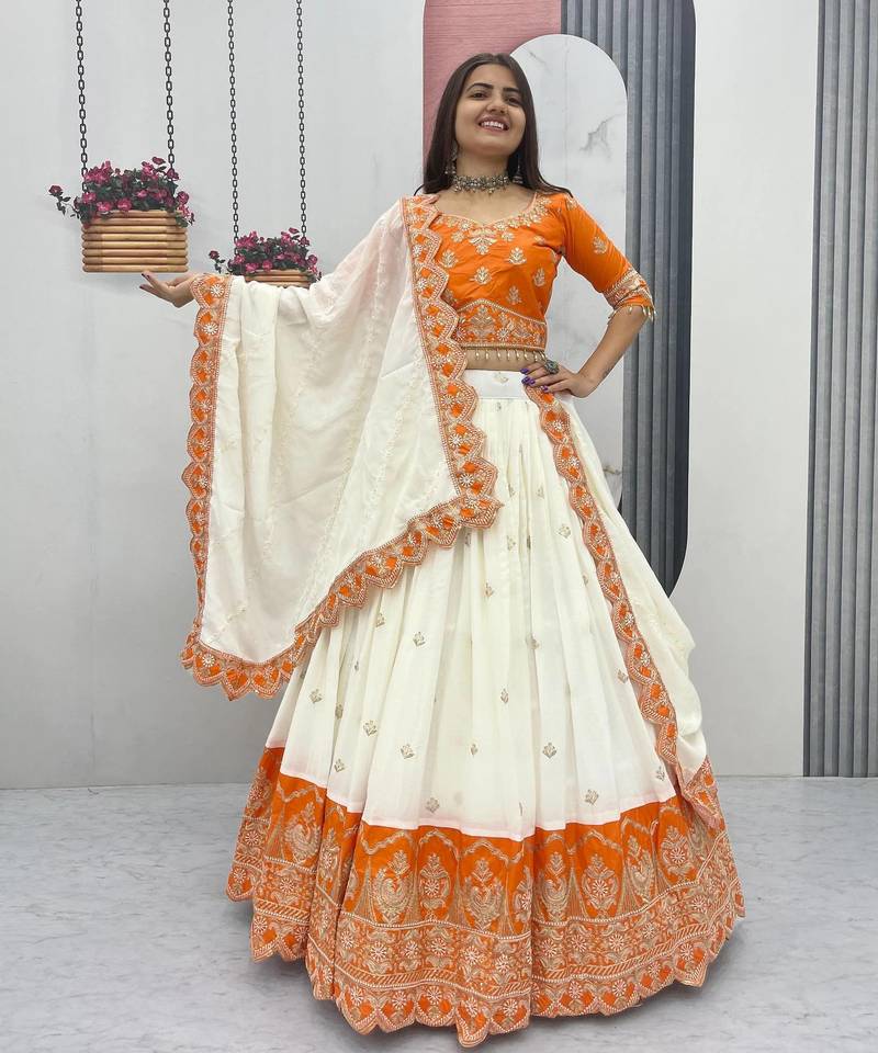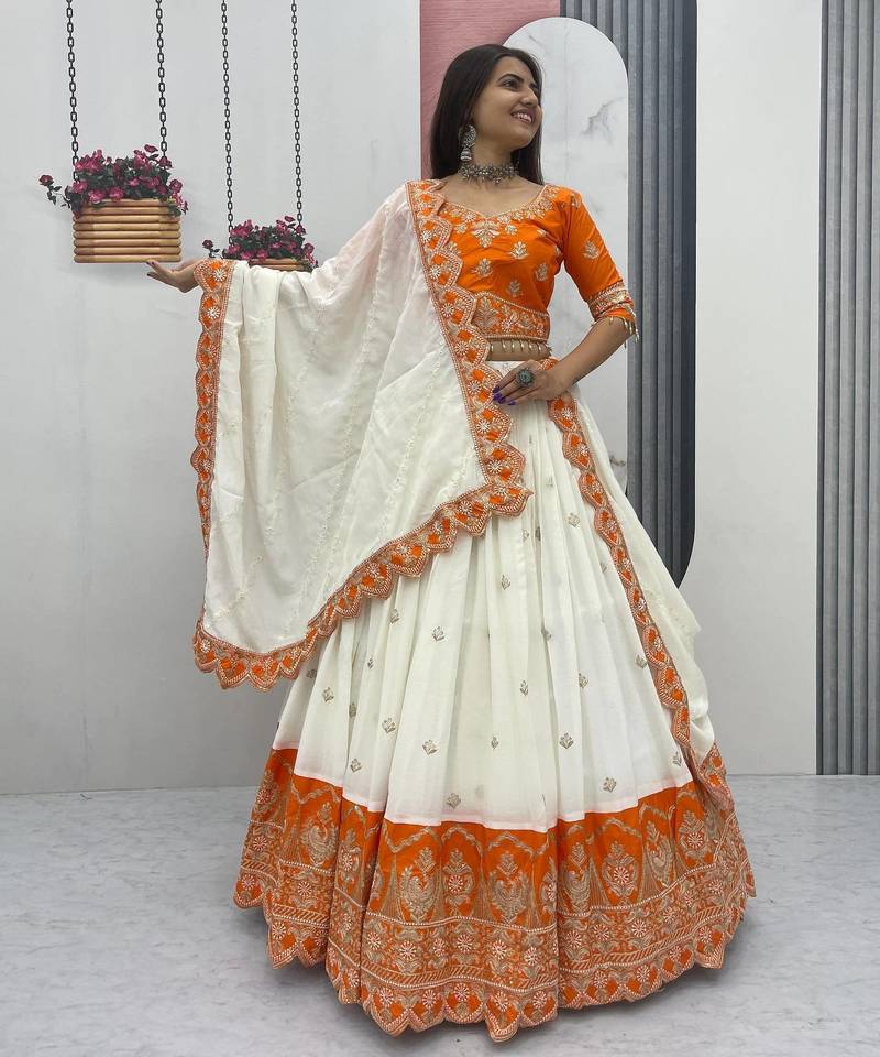 | Product Name | Orange Chinon Heavy Embroidered Coding Sequin Work Lehenga Choli With Dupatta | |