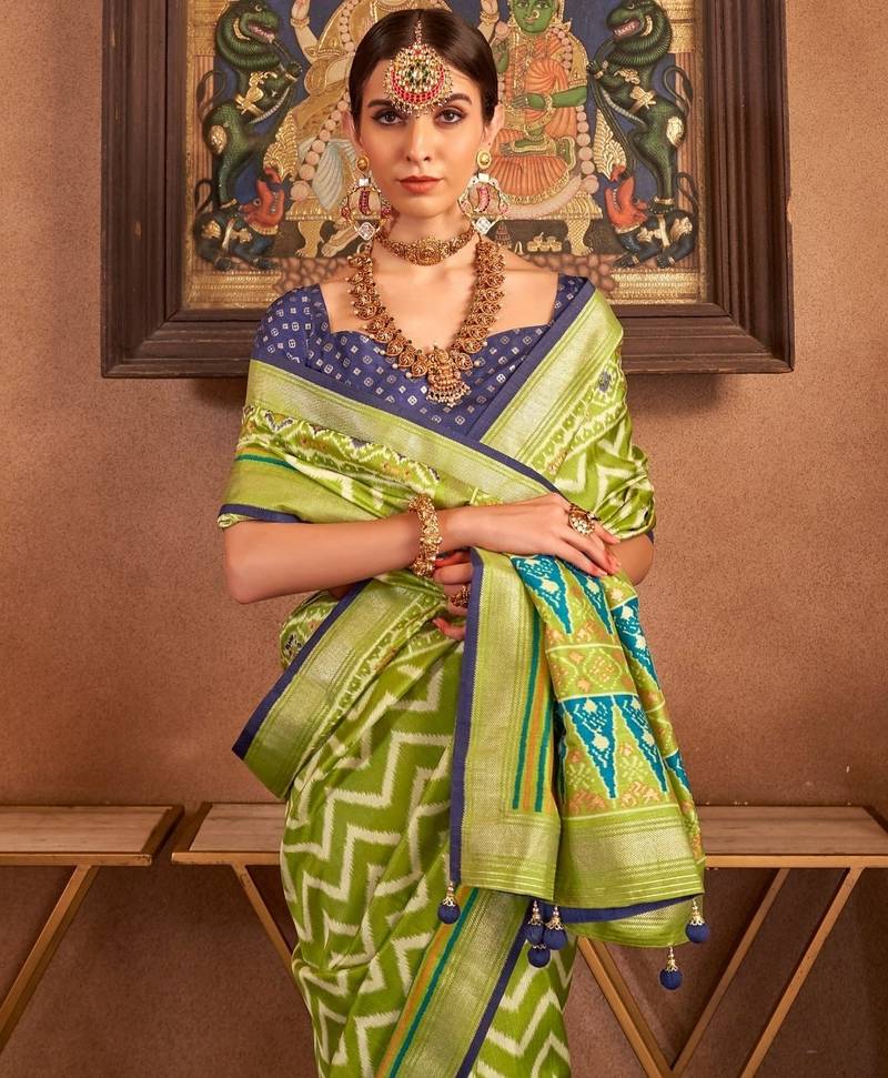 | Product Name | Parrot Patola Silk Blend Saree With Traditional Motifs & Zari/Contrast Border | Unstitched Blouse | |