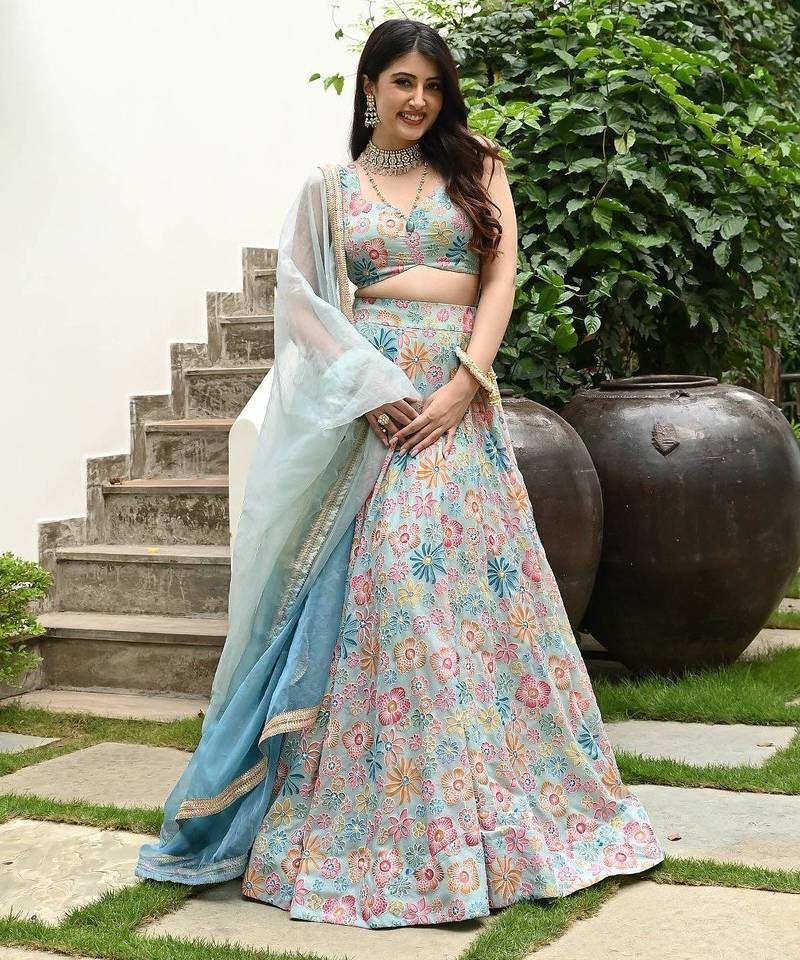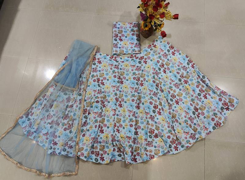| Product Name | Pastel Blue Digital Floral Print Lehenga With Hook Beads Work | |