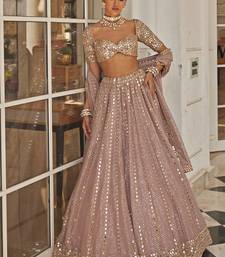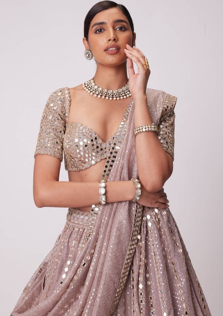 Pastel lavender semi viscose organza lehenga with mirror embroidery