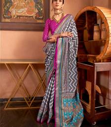 Pink patola silk blend saree with traditional motifs & zari::Contrast border | unstitched blouse