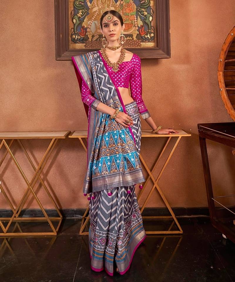 | Product Name | Pink Patola Silk Blend Saree With Traditional Motifs & Zari/Contrast Border | Unstitched Blouse | |