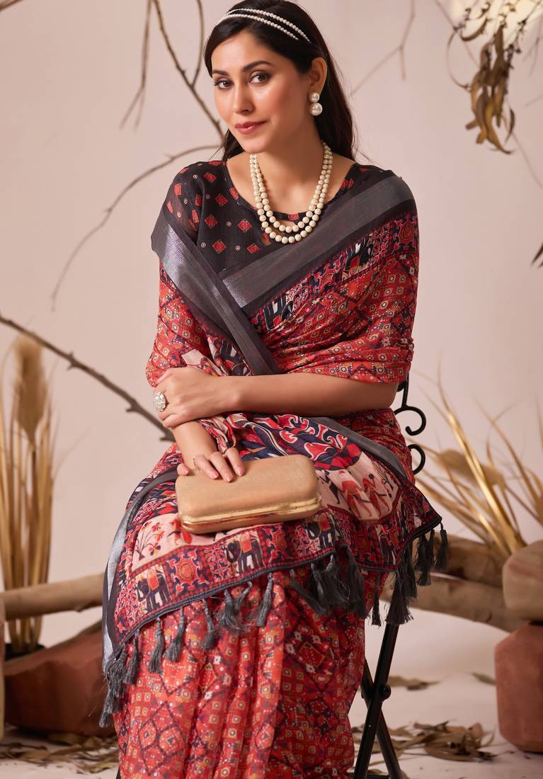 | Product Name | Premium Linen Cotton Saree With Floral & Ethnic Prints & Contrast Patola Border | Matching Printed Blouse | |
